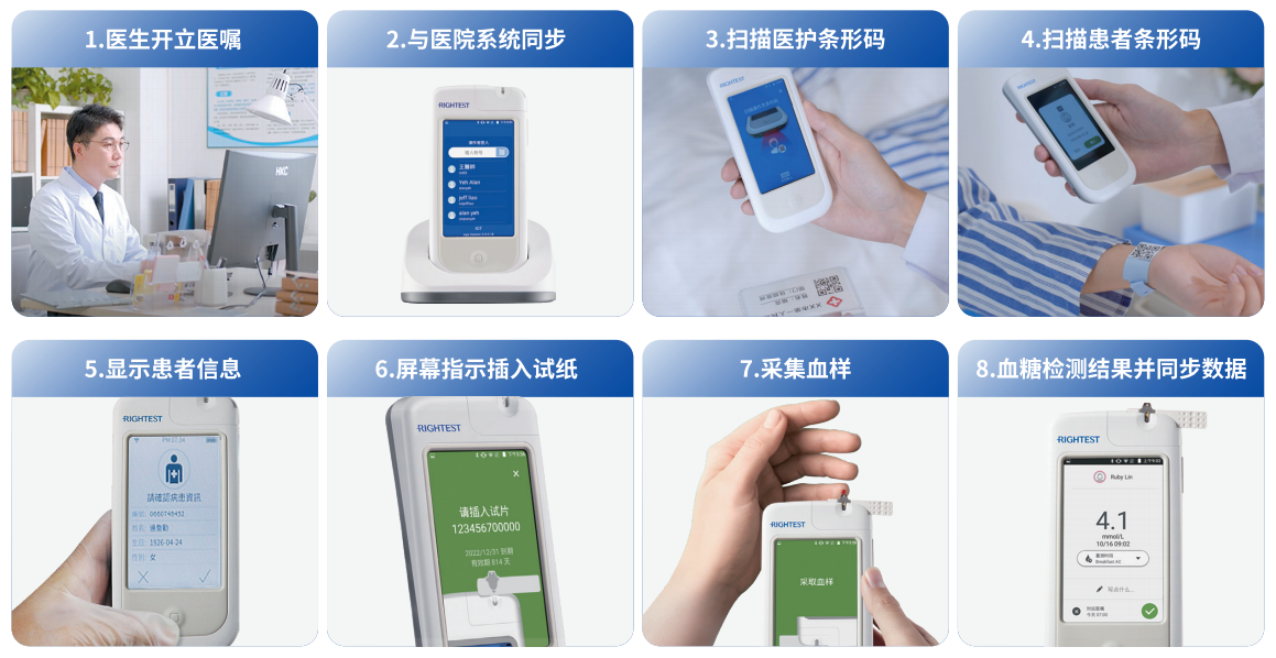 微量采血,仿若无痛,8秒出结果,仪器自动存储数据。