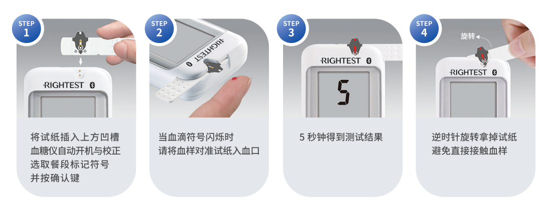 试纸横插设计,避免血液交叉感染,大面积握柄易拿取。