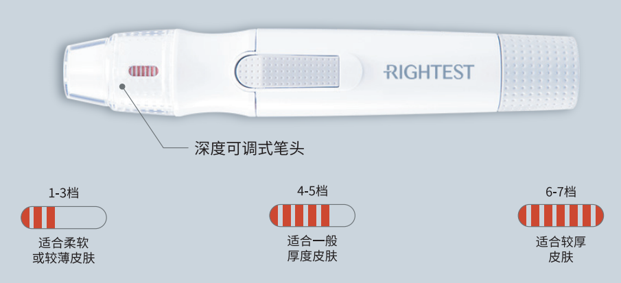 7档采血深度选择,灵活调节。